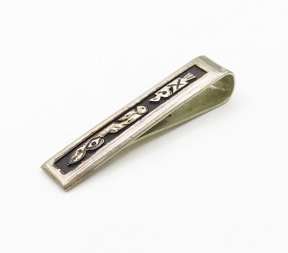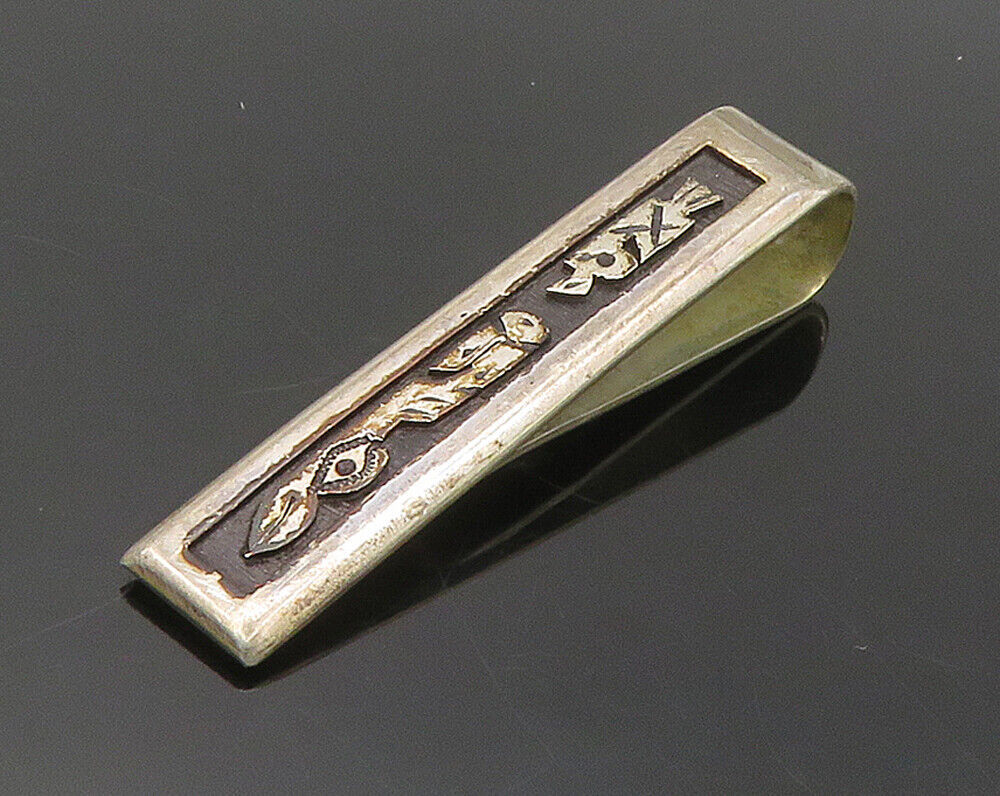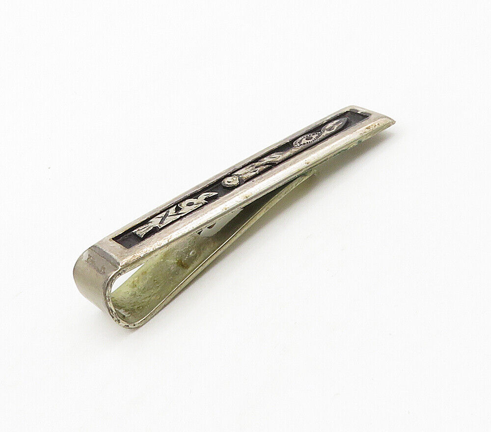 Primary image for 925 Sterling Silver - Vintage Oxidized Detail Square Tie Clip - TR2199