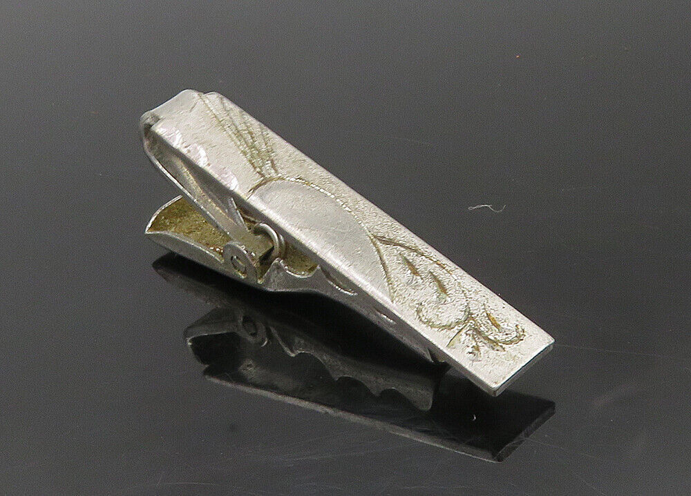 Primary image for 925 Sterling Silver - Vintage Petite Shiny Swirl Etched Design Tie Clip - TR1690