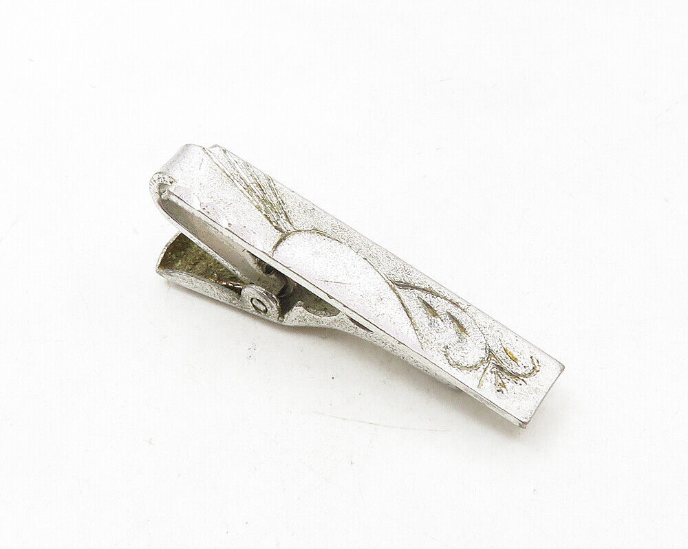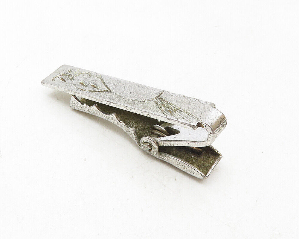 925 Sterling Silver - Vintage Petite Shiny Swirl Etched Design Tie Clip - TR1690