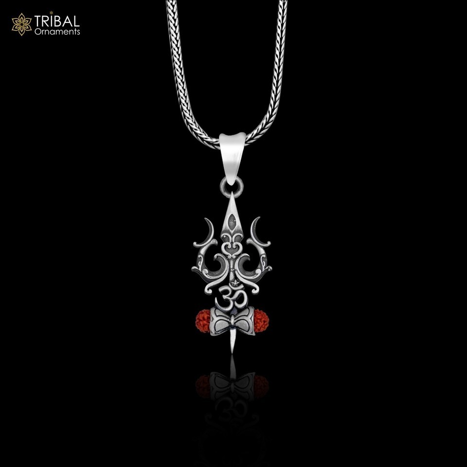 - 925sterling silver lord shiva trident ( trishul ) Pendant unisex jewelry nsp1013