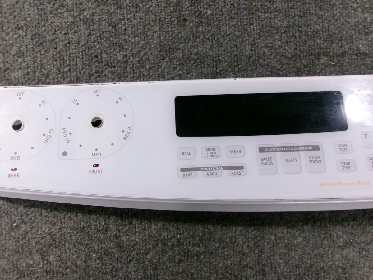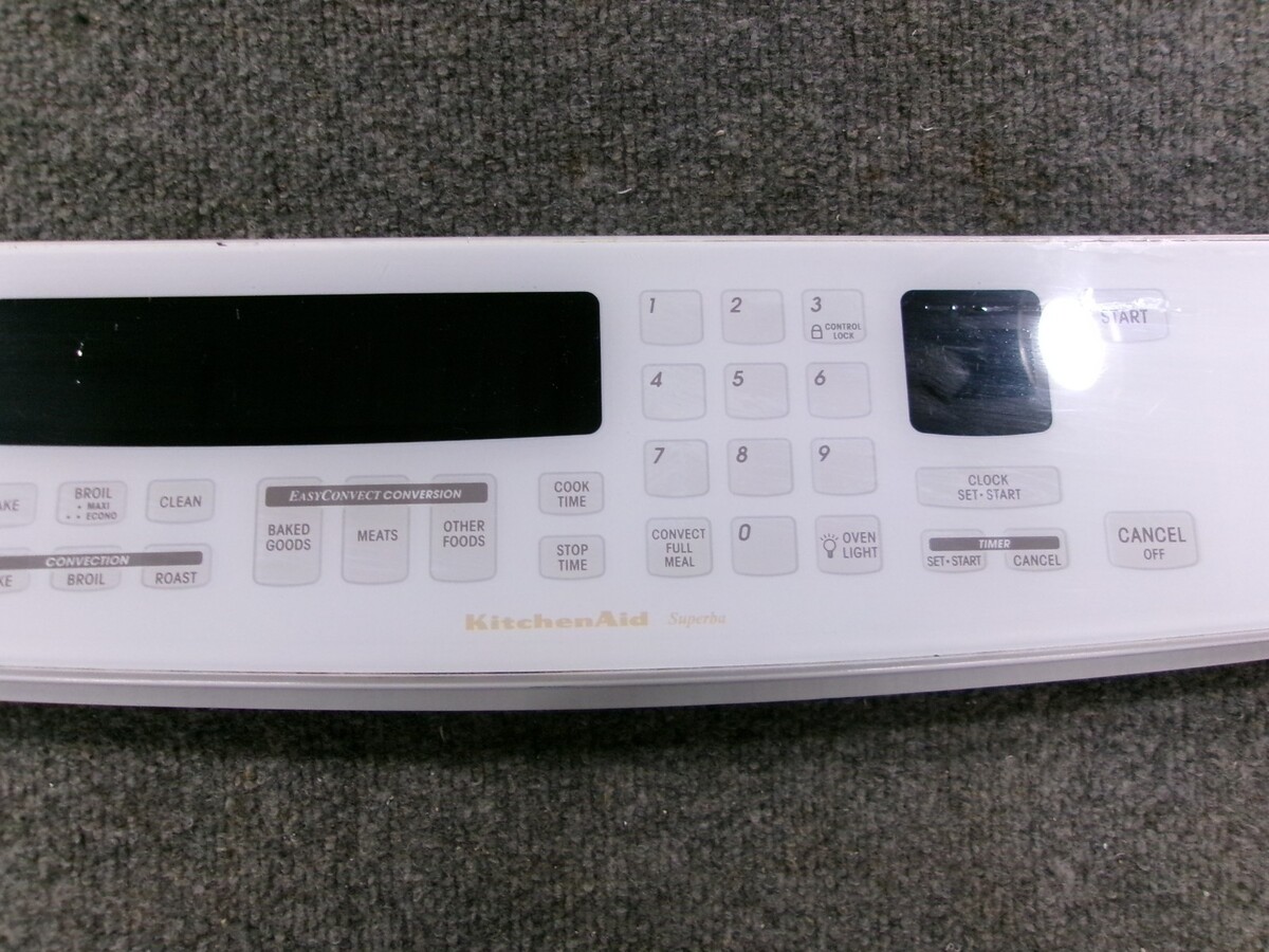This listing is for a one used KitchenAid Range / Oven glass touch membrane part number 9751898. Part has normal signs of being a used such as scratches or staining but in overall great working condition. Please make sure this part matches what you need. If you are unsure please email with any questions. This part was removed from a KitchenAid Range (Model # KESH307BWH5) and will fit several different ovens.