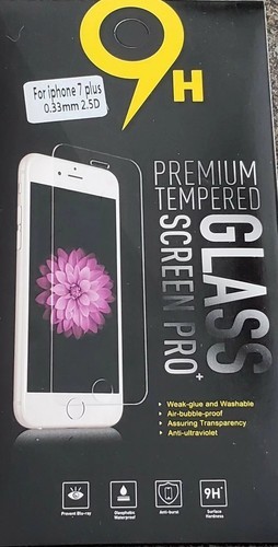This sale is for a 9H brand screen protector Screen protector is for an iphone 7 plus Premium tempered glass screen pro 0.33mm 2.5D Air bubble proof Assuring transparency Anti-Ultraviolet Absorbs 5 times more impact energy than normal screen protectors Easy to clean ~ anti fingerprint Scratch resistant Impact dispersion Impact damping High strength Zero residue adhesive Thin as three (3) sheets of printer paper Screen protector is new in original packaging Please view photos for a good description of this item Thank you!