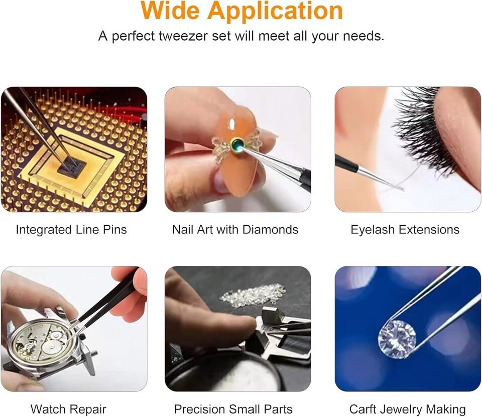 Experience the joy of flawless work whether you're repairing electronics, creating intricate jewelry, or engaging in the delicate art of eyelash extensions. Each tweezer is not only meticulously designed for superior grip and maneuverability but also comes with protective features ensuring your safety and the longevity of your tools.