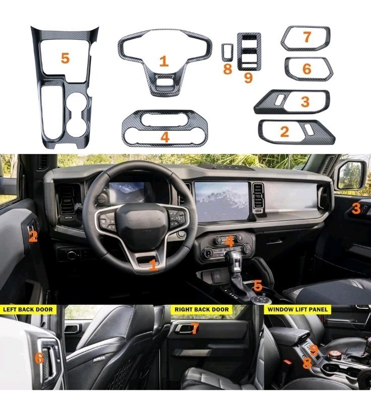 - 9pcs Ford Bronco Interior Accessories Gear Shift Panel Cover Inner Door Handle