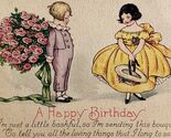 A Birthday Greeting Postcard 1900-10s Victorian Children Flowers Dress PCBG3D