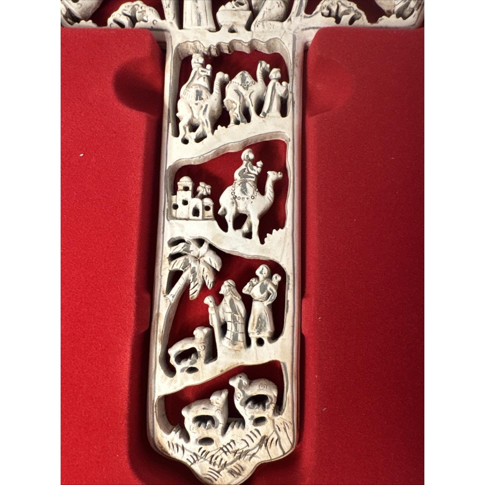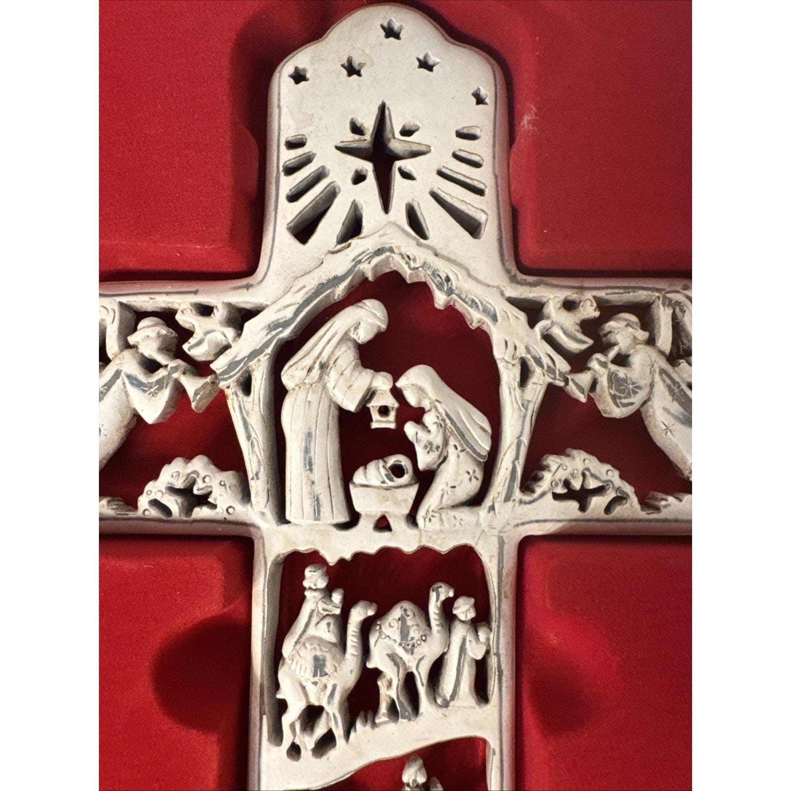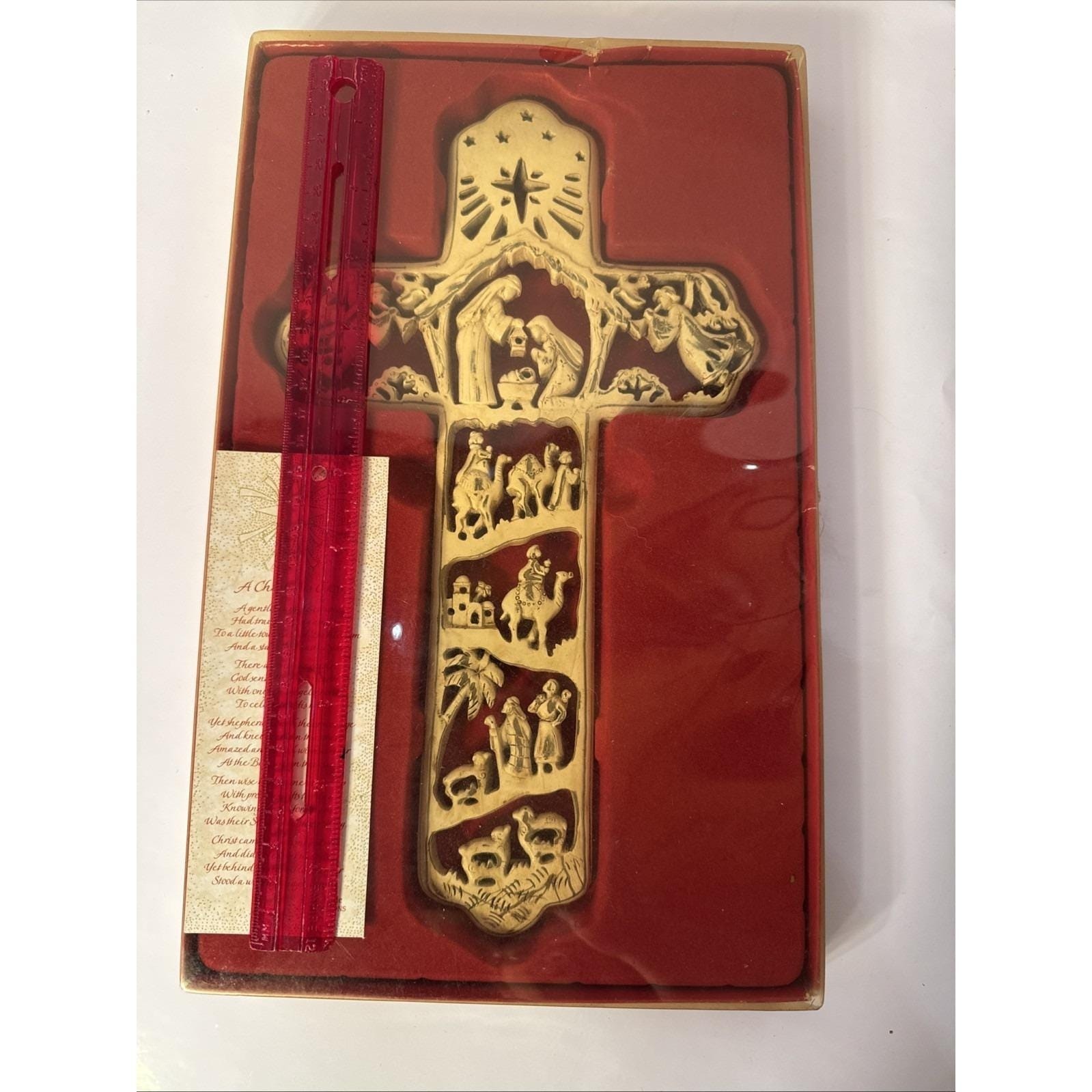 - A Christmas Cross R. Fogle Dicksons In Box Wood Cut Cross With Nativity Scene