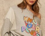 5. Design: Experience the vintage-style "Know Your Power" multicolor text graphic print, with a round neckline and contrast inside-out accents for a unique and trendy look.