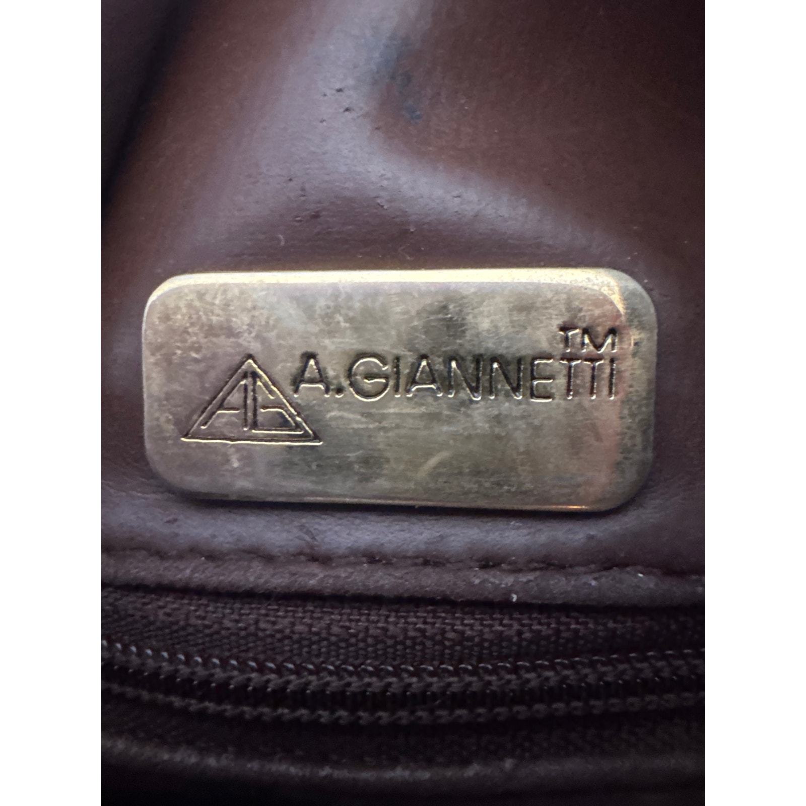 Vintage A. Giannetti genuine leather sling backpack in deep brown. Crafted from soft, supple leather with a rich patina and solid brass hardware. Features front flap pocket with clasp, adjustable strap, and full zip closure. Perfect for casual wear, travel, or daily essentials.