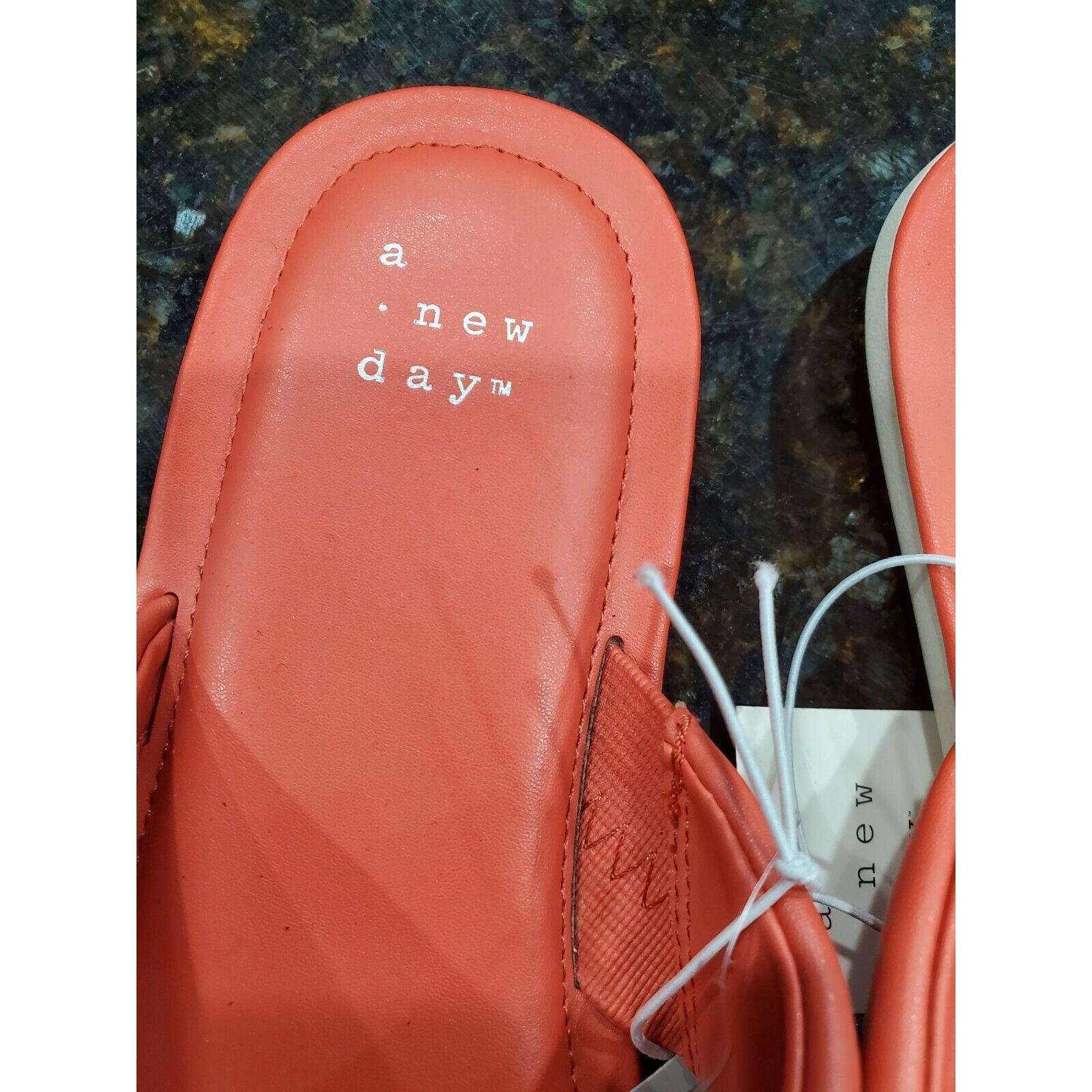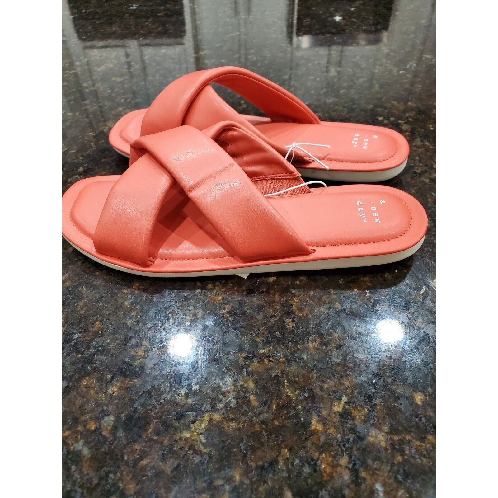 A New Day Orange Women's Daisy Crossband Coral Slide Slip-On Sandals Size 8.
