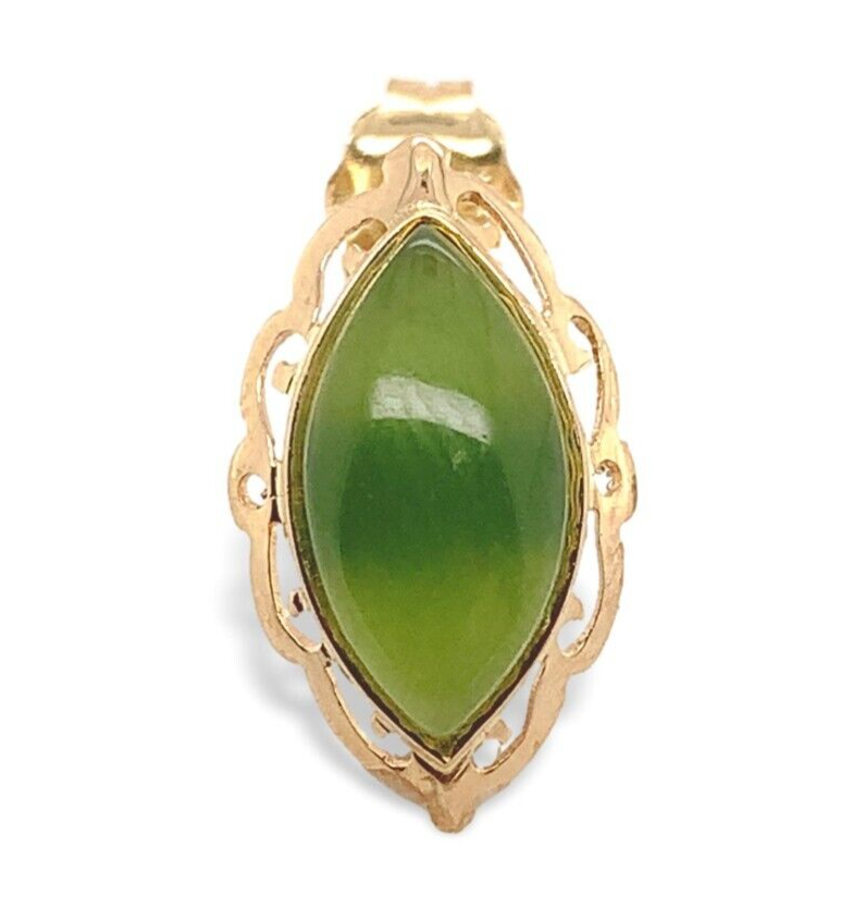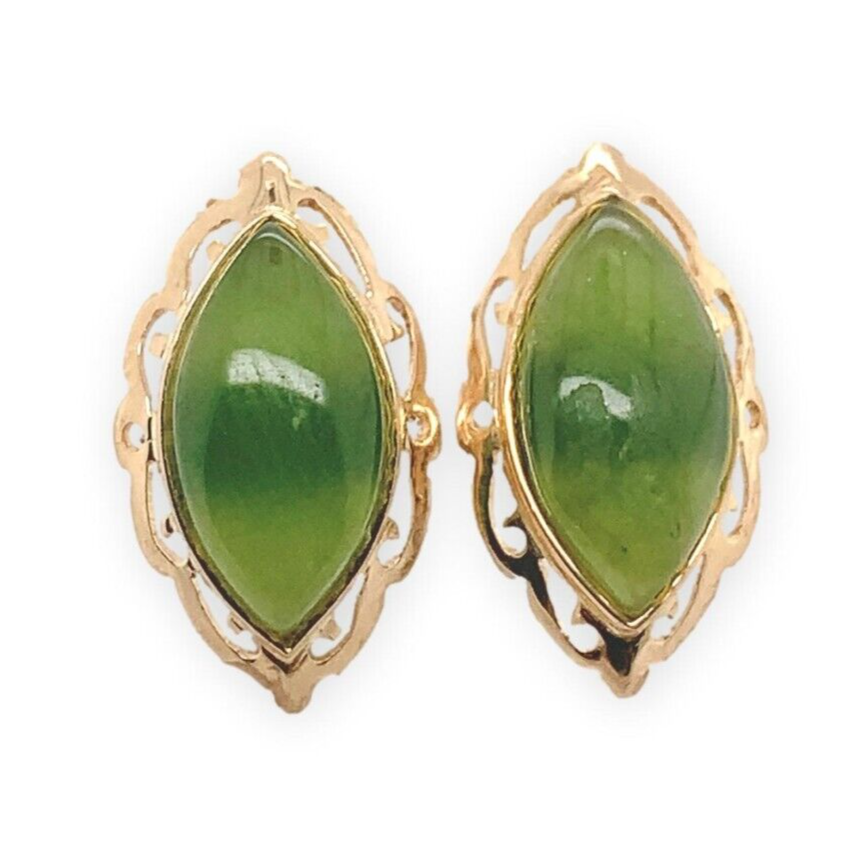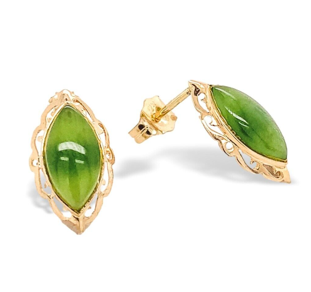 - A Pair of 14k Yellow Gold Marquise Jade Stud Earrings Jewelry (#J6964)