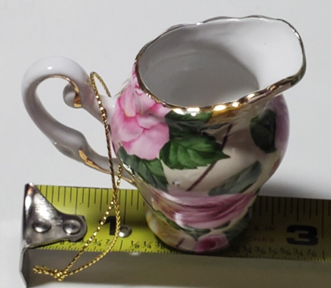 A SPECIAL PLACE 2003 Porcelain Pitcher Pink Floral Gold Trim Doll House Ornament XSLFBX