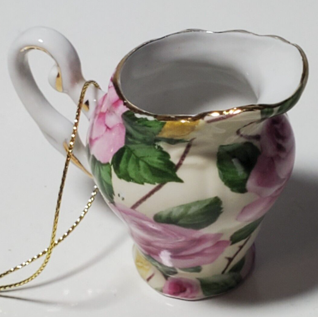 Primary image for A SPECIAL PLACE 2003 Porcelain Pitcher Pink Floral Gold Trim Doll House Ornament