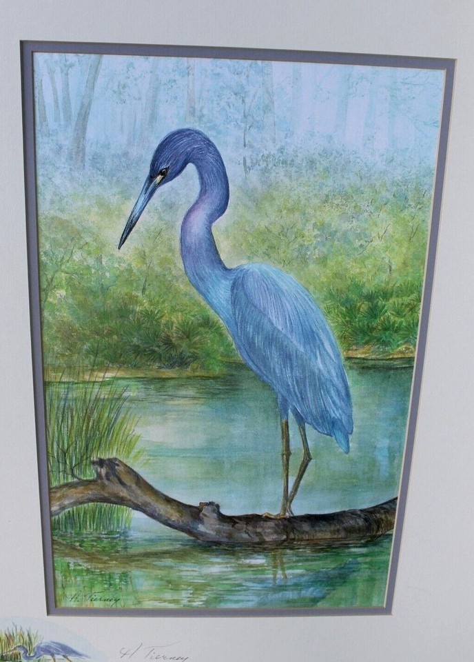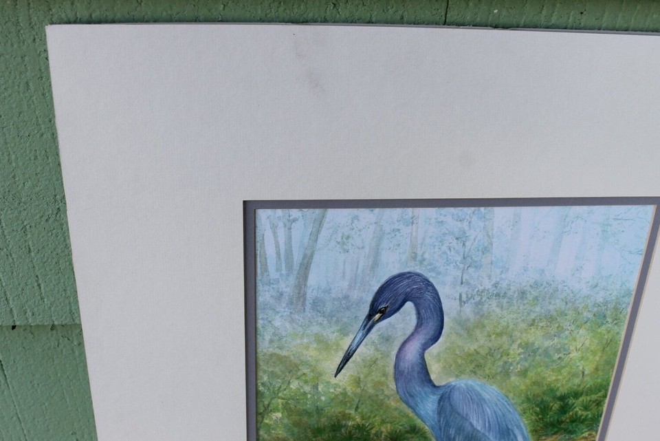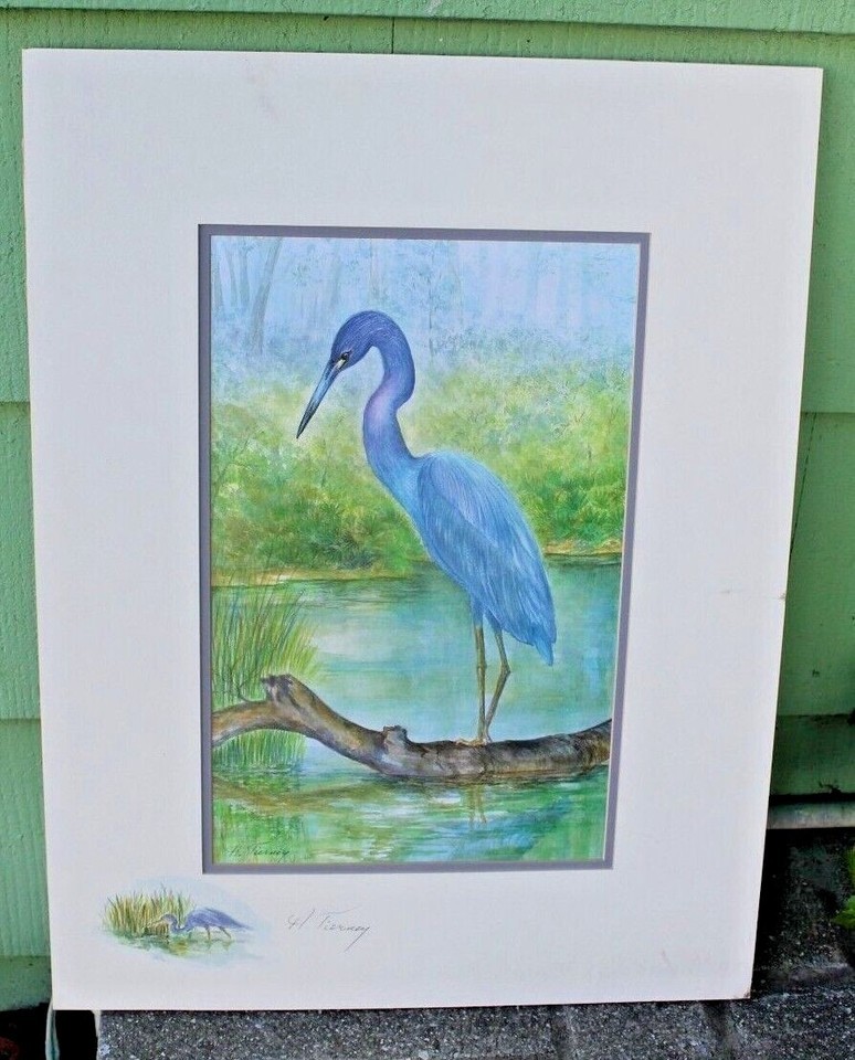A. Tierney Signed Matted 17”X11" Florida Everglades “EGRET” Watercolor Art Print