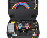 ?Complete Gauge Set?This complete set of air-conditioning gauge set is suitable for mainstream AC R134A R410A R404A and R22 refrigerants. Designed for checking pressure in AC lines, leak determination, Freon top-offs, recovery work, and complete evacuation recharges.