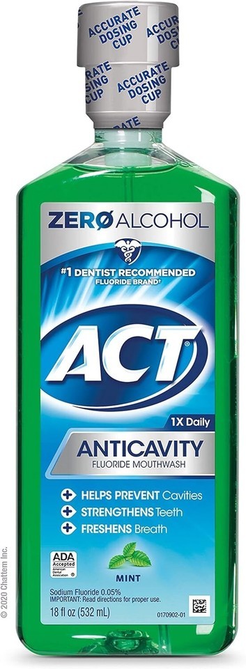Primary image for ACT Anticavity Zero Alcohol Fluoride Mouthwash 18 fl. oz., With Accurate Dosing