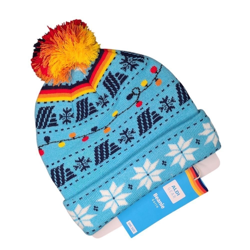 ALDI GEAR Festive Winter Knit Beanie with Nordic Pattern & Pom Pom - Snow Theme
