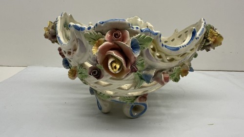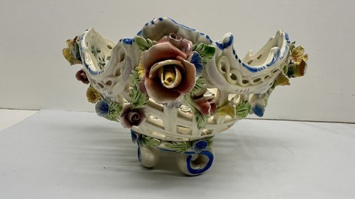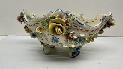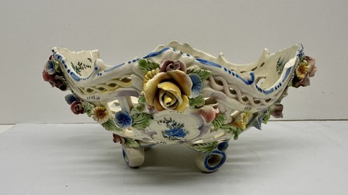 ANTIQUE Molded Floral Large Bowl Centerpiece Stunning! Made In Italy Capodimonte