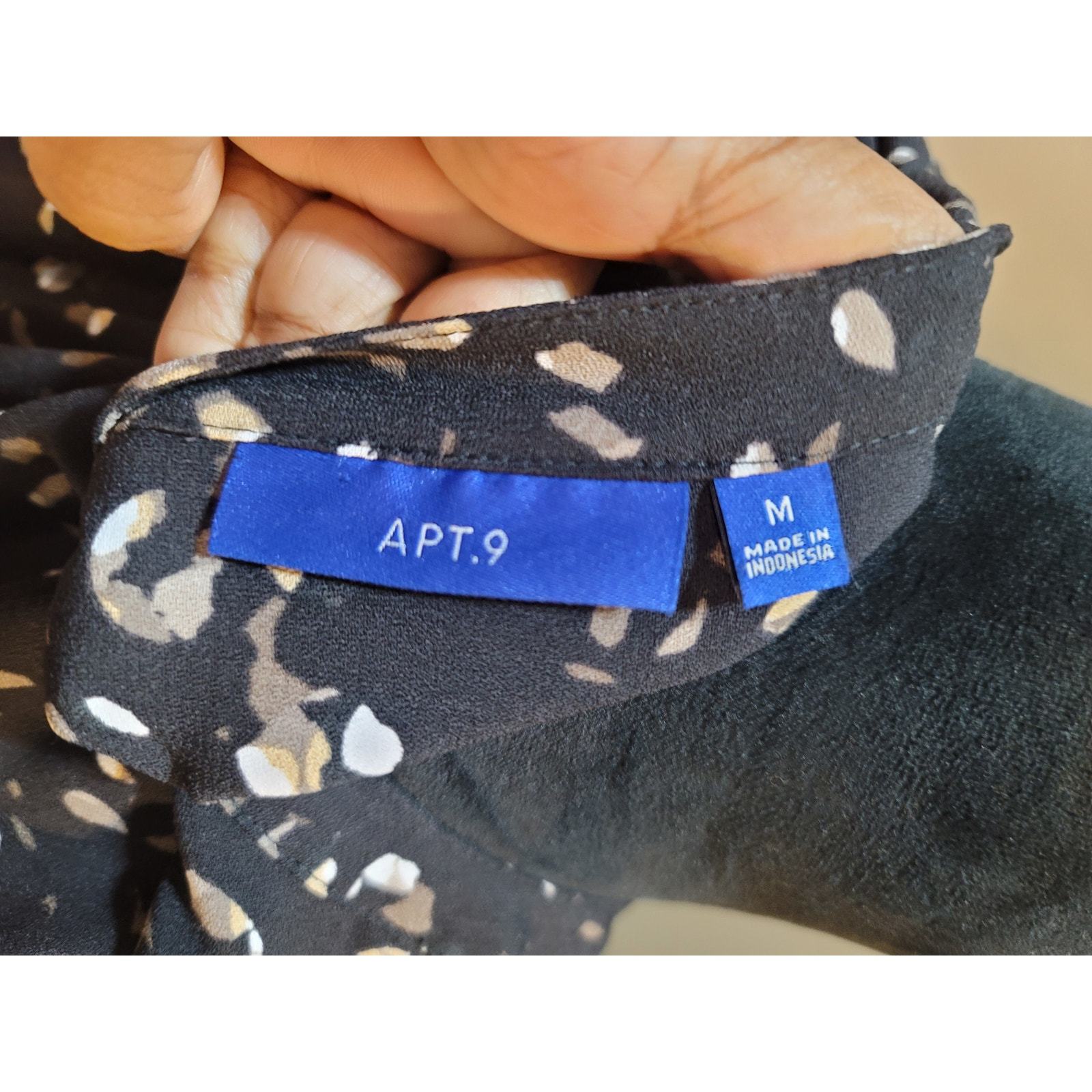 - APT.9 Blouse Women's Size M Black White 100% Polyester Round Neck Bell Sleeves