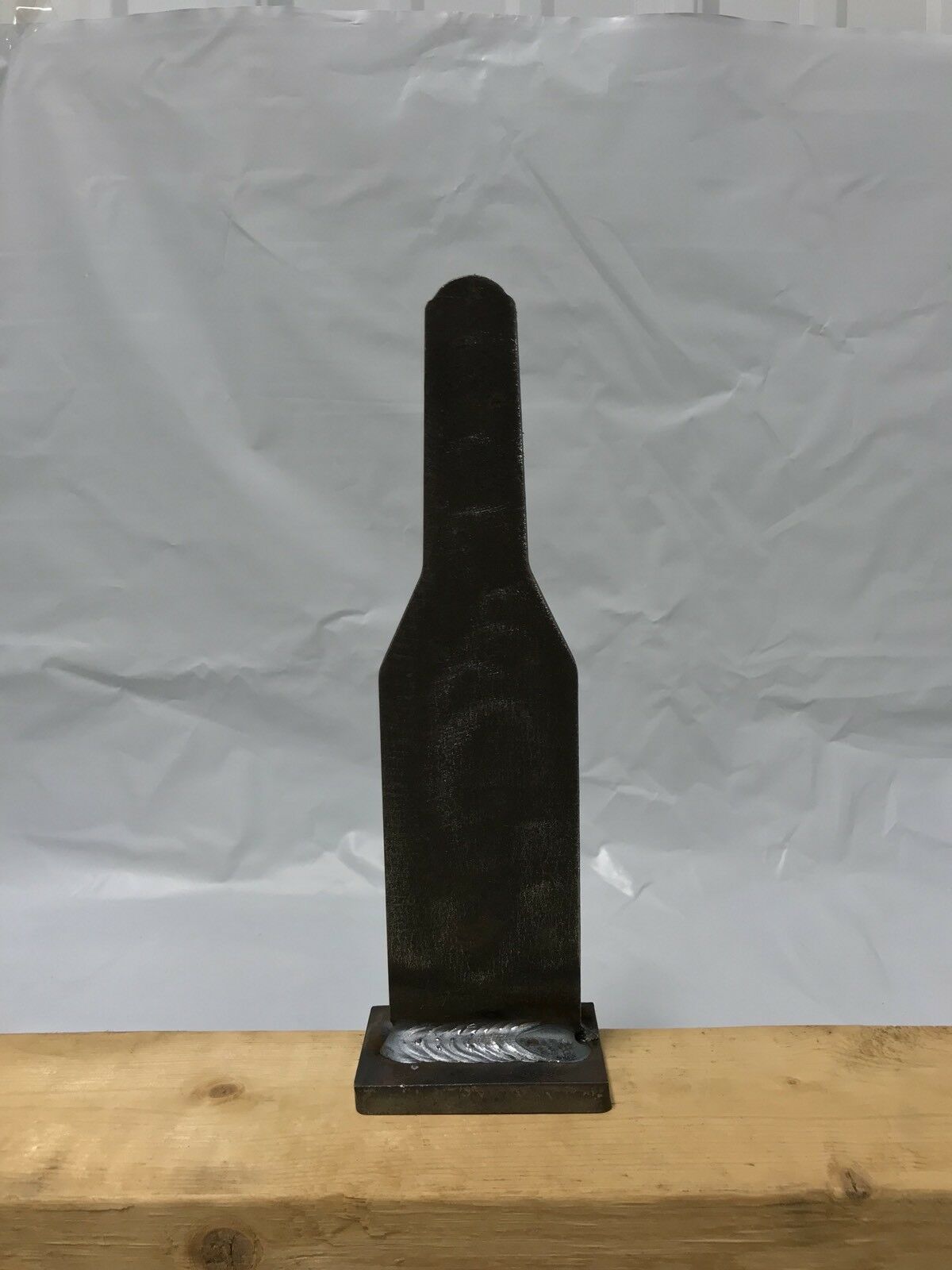 Harness Machine Fab AR500 3/8” Steel Beer Bottle Knock-over Shooting Target WE CAN MAKE ANY SHAPE YOU WANT! Product Information Manufactured from new high quality AR500 steel plate made in the USA Target are not painted. They will be in raw steel form. They're getting shot anyways so why waste your time paying for paint!! Precision cut with a CNC High definition plasma cutter and submerged watercooled during the cutting process. There is absolutely no difference in HAZ between this process and laser. Can be hung from chain, using bolts or clevises. Cable, tarp straps and rope. Please email or contact us anytime with questions or custom quantities, sizes and shapes. Warnings -Recommended shooter and spectators wear proper eye and hearing protection. -Minimum distances from steel targets to shooter are 10 yards for pistols and 75 yards for rifles Disclaimer Buyer assumes all responsibility for the use and misuse of the targets purchased.