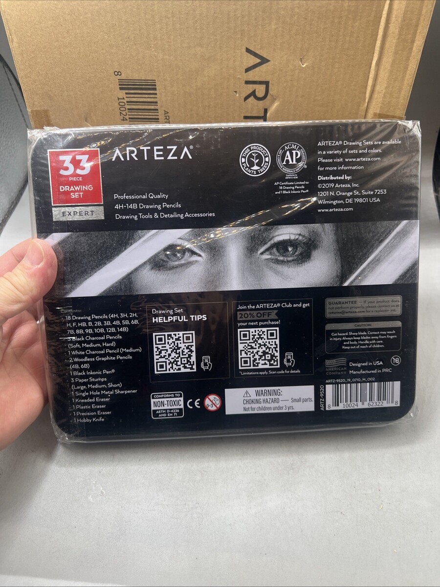 ARTEZA EXPERT 33 Piece Professional Quality 4h 14B Drawing Pencils Charcoal NEW!
