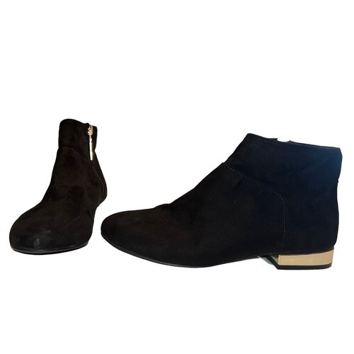 ASOS ACTON Flat Ankle Boots Bootie Women Size 6 Black Suede Side Zipper Preowned