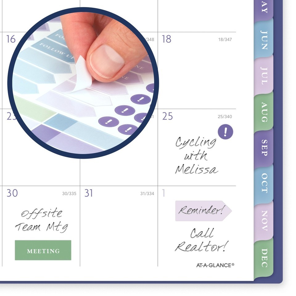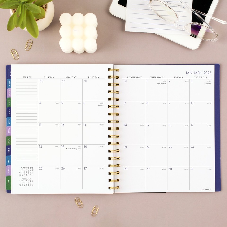 AT-A-GLANCE BADGE 2025 Weekly Monthly Planner Geo Medium 7" x 8-3/4" Stay organized with the 2025-2026 AT-A-GLANCE BADGE Weekly/Monthly Planner. This planner has weekly and monthly layouts to keep you on track. 35The poly cover and twin wire binding keep pages secure. Weekly layouts let you plan, set goals and write notes. Spacious, tabbed monthly pages. Covers 13 months from January to January with Julian dates. Special pages include a holiday list, 7 contacts pages, 6 notes pages, a 3-year reference calendar and event calendar.