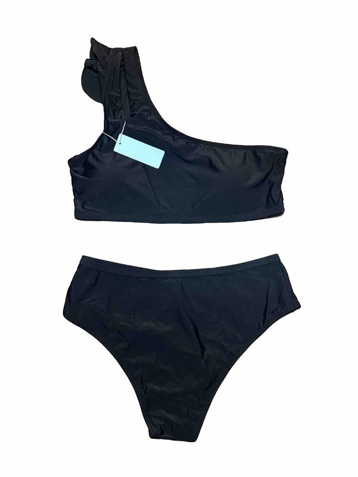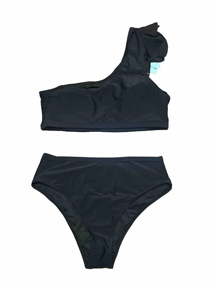 ATHMILE Swimsuit Women's Black Bathing Suit Bikini 2 Piece Shoulder Ruffle Sz XL