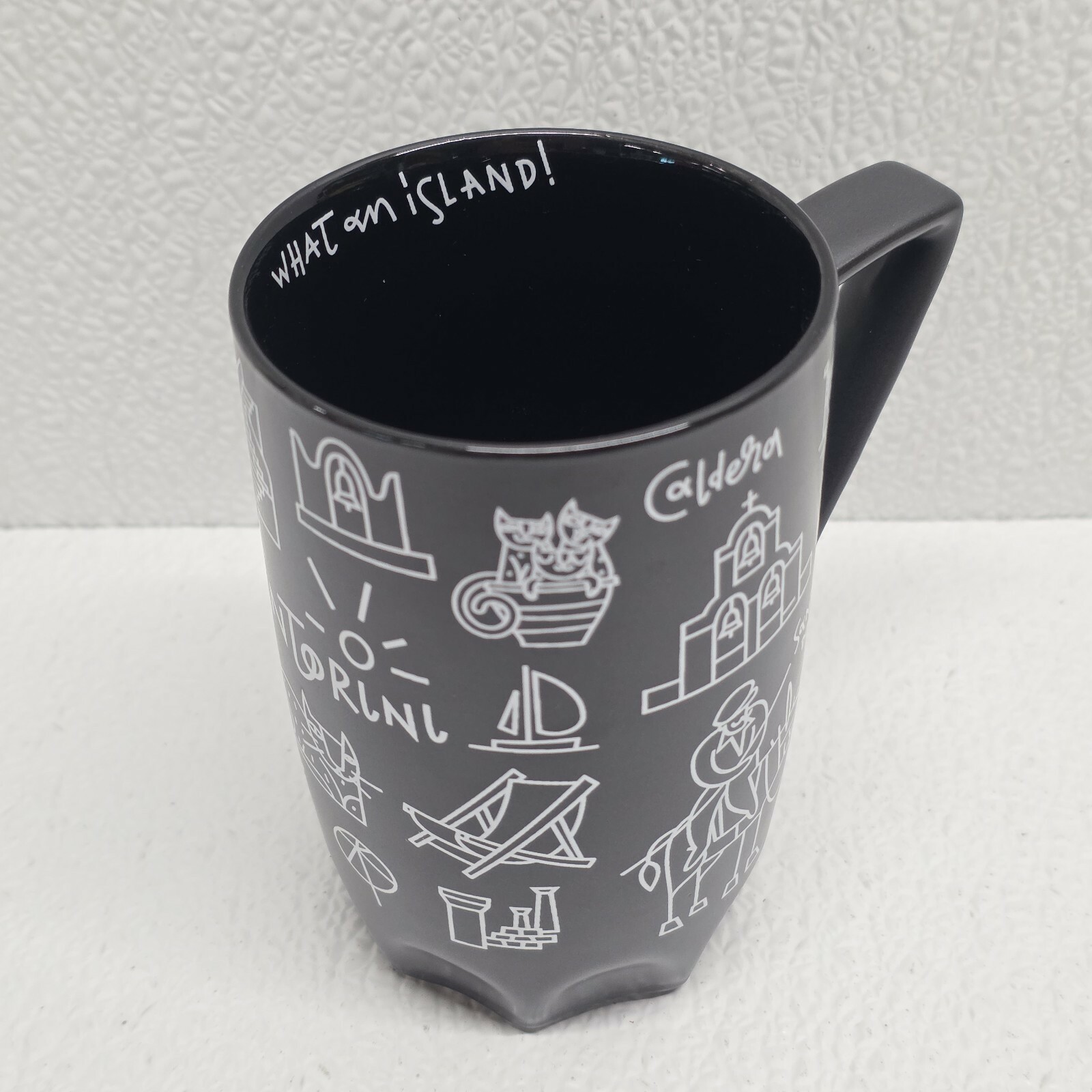 ATP Santorini What An Island! Black Coffee Mug Cup Souvenir. Images show actual item that will ship.