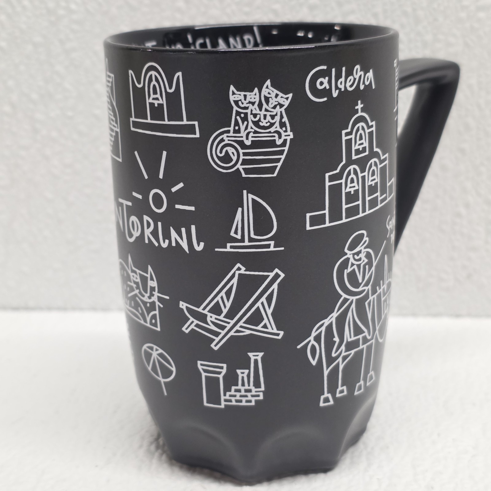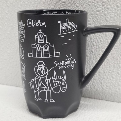 - ATP Santorini What An Island! Black Coffee Mug Cup Souvenir