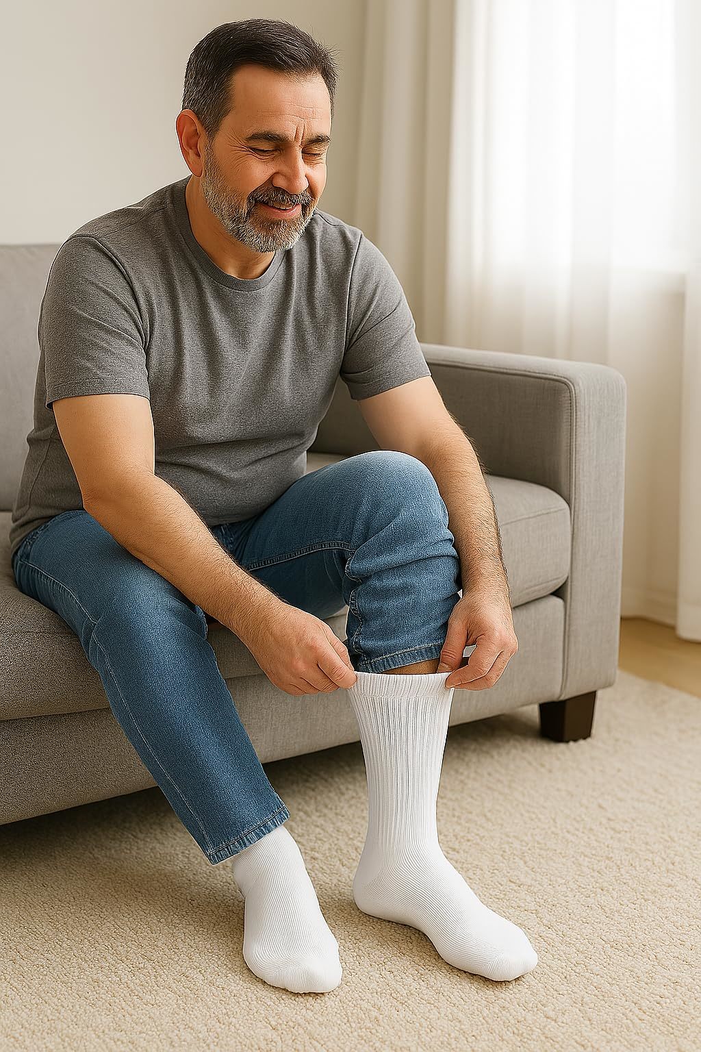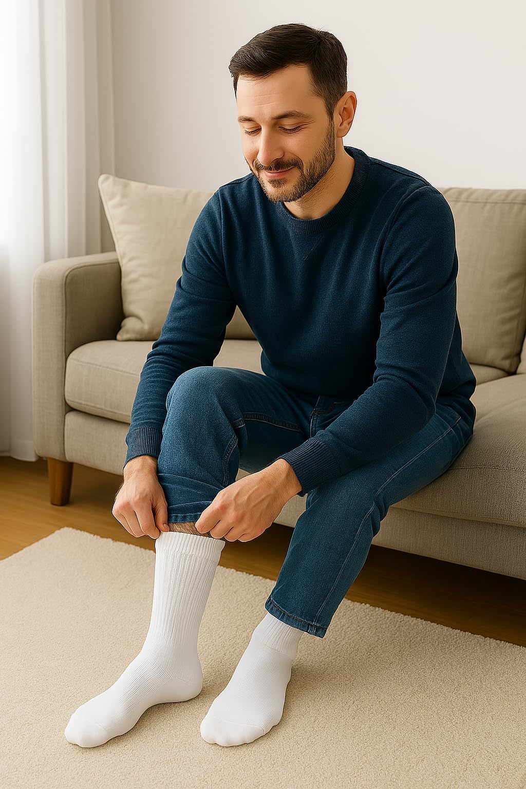 Bullet point: DESIGN: White Diabetic Knee High Socks for Men with Full Cushioned Sole specially designed to promote blood flow, reducing swelling and discomfort. Durability: The combination of materials ensures that the socks are long-lasting and maintain their shape wash after wash. Breathable Fabric: Keeps feet dry and comfortable, reducing the risk of fungal infections.