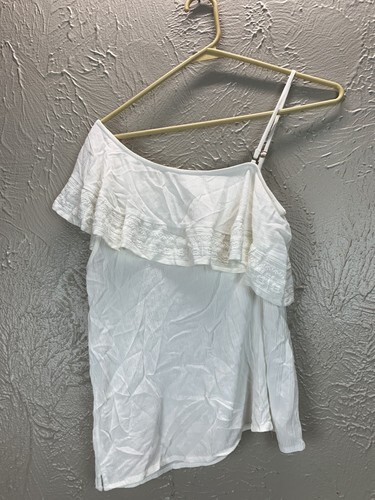 Abercrombie & Fitch Embroidered Ruffle One Shoulder Top XS Extra Small