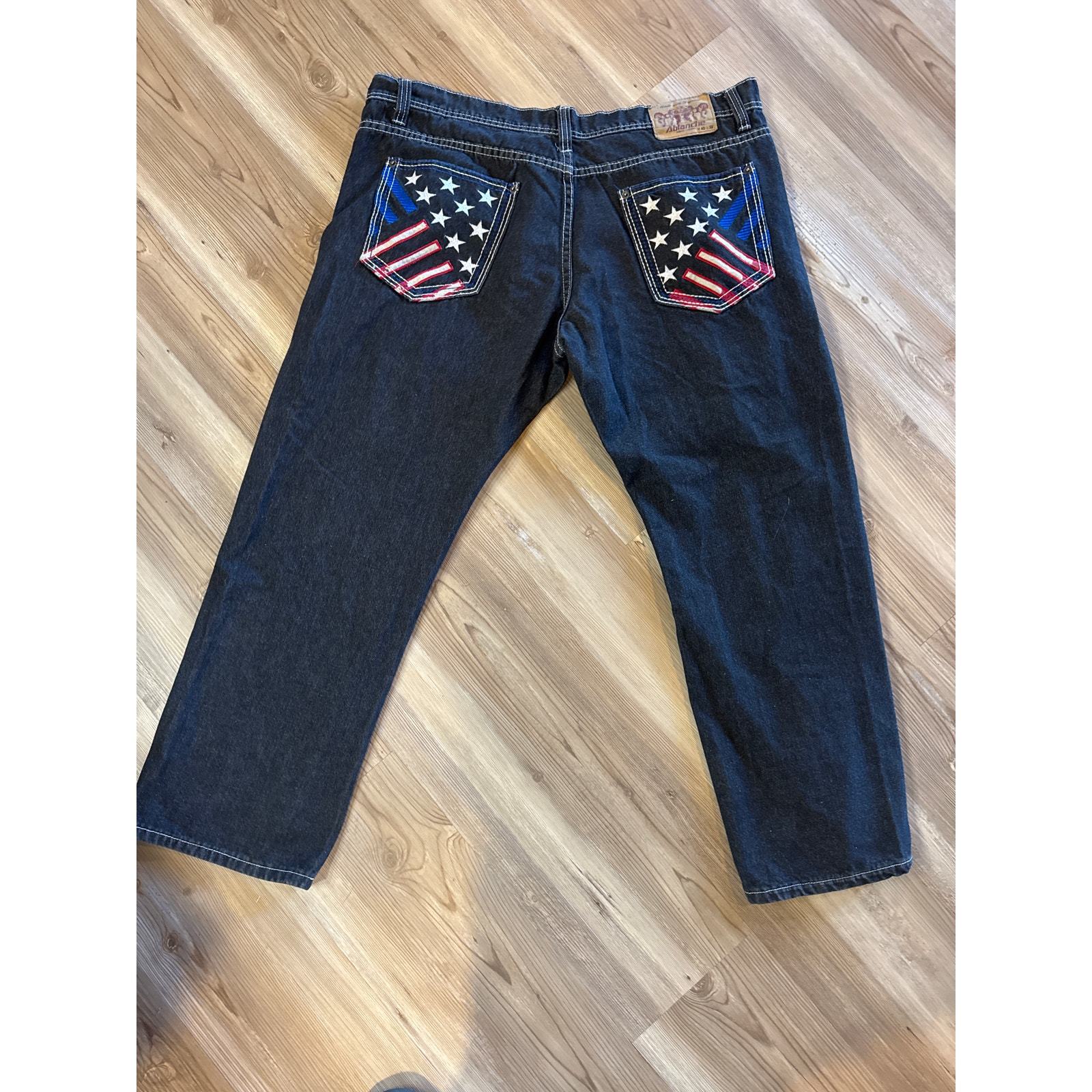 Ablanche Mens Jeans Dark Blue Baggy Flag Wide-Leg Streetwear Y2K Size 40x32