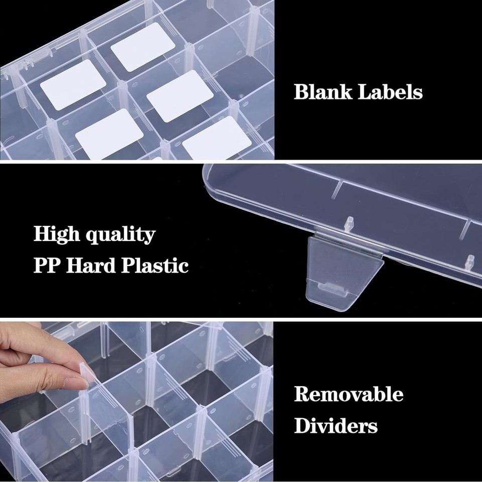 High Quality Clear Material: You will receive 1 plastic storage box and 2 sheets of stickers. These organizer boxes are made from durable PP material and the clear box is easy to see at a glance, so you can easily and quickly find what you want in the box.