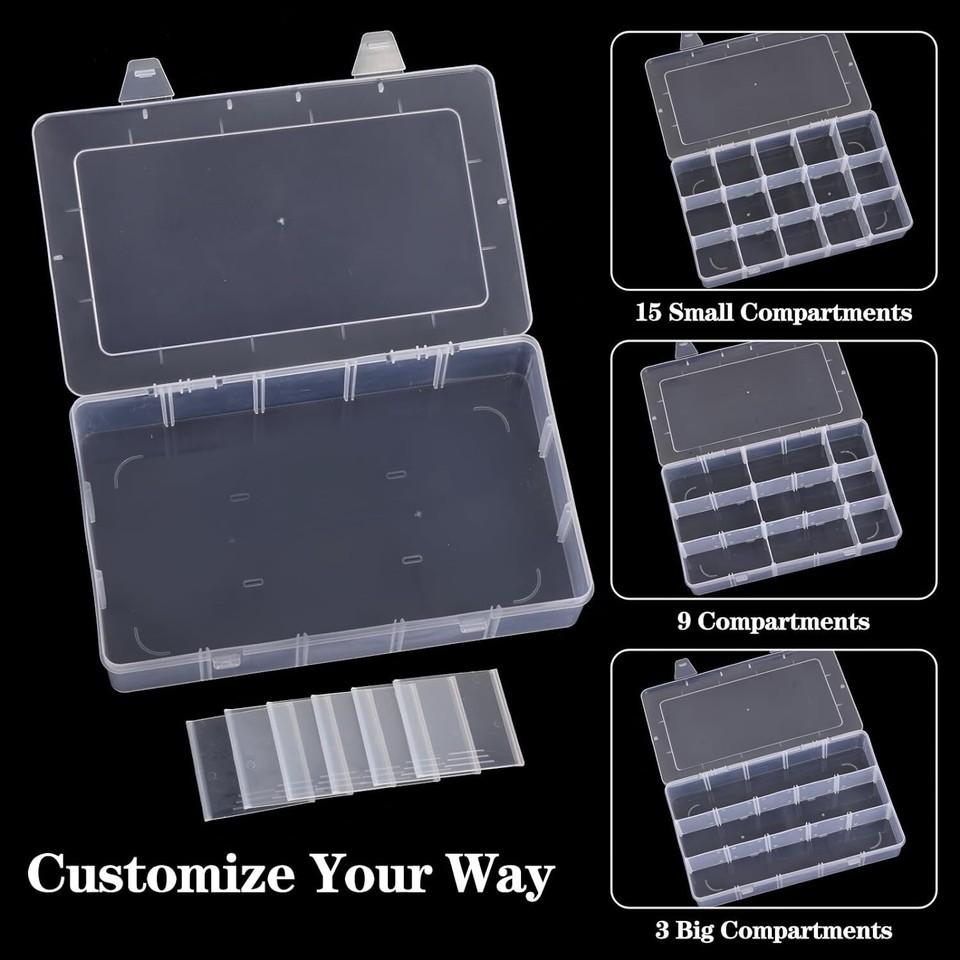Perfect Size: The overall dimensions of the beads organizer are 10.7" x 6.9" x 2.2". With removable dividers, 15 small compartments can be created if all the dividers are fitted. Each grid measures will help you to store more items of different kinds.
