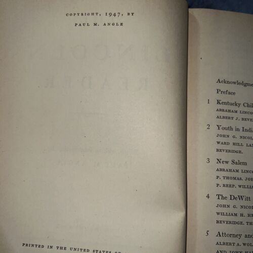 ABRAHAM LINCOLN The Lincoln Reader 1st Edition 1947 CIVIL WAR EMANCIPATION LIFE.