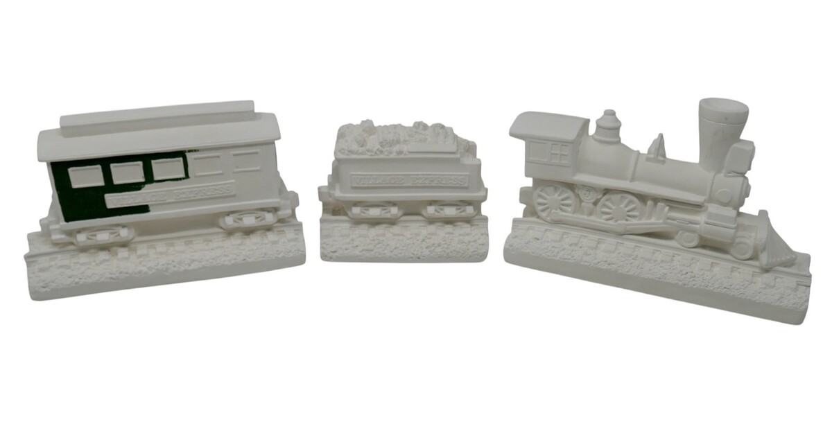 The Accent Ultd Village Express Train Set Kit #21525 is a ready-to-paint pottery craft kit from the brand Wee Crafts. This set includes a train-themed model, perfect for those who enjoy sculpting and molding ceramics. The kit only includes the train which one piece has been semi painted. Made in the United States, this kit offers a unique and creative project for craft enthusiasts looking to add a touch of personalization to their home decor. See photos for item condition, this is a picture of the actual item. All reasonable offers considered!! **Payment** We do expect payment within 48 hours of the purchase. If for some reason you need a couple of extra days, please let us know. **Feedback** Once you have received your item, if you are satisfied, please leave feedback. We are happy to leave feedback for you after you have left feedback for us to let us know that you have received your item and the transaction is complete. Please contact us before leaving feedback if there is a problem. **International Buyers ? Please Note** Import duties, taxes, and charges are not included in the item price or shipping cost. These charges are the buyer's responsibility. Please check with your country's customs office to determine what these additional costs will be prior to bidding or buying. Check out our store for more deals!!