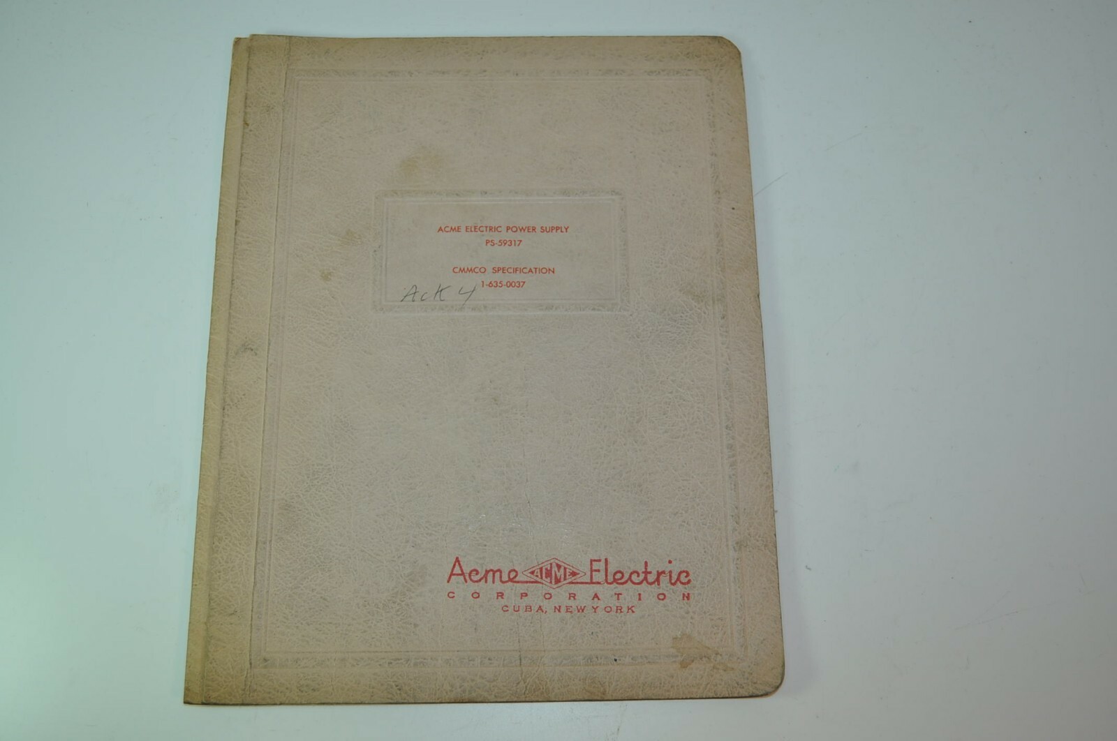 Acme Electric Power Supply Welding Manual Cincinnati PN#- PS-59317 CMMCO PN#- 1-635-0037 This is awesome. This is not to be found anywhere except right here. This is complete book. This has complete wiring diagram with it that folds out. Please see the table of contents on pictures. Will ship international. please ask questions. Please look at pictures.