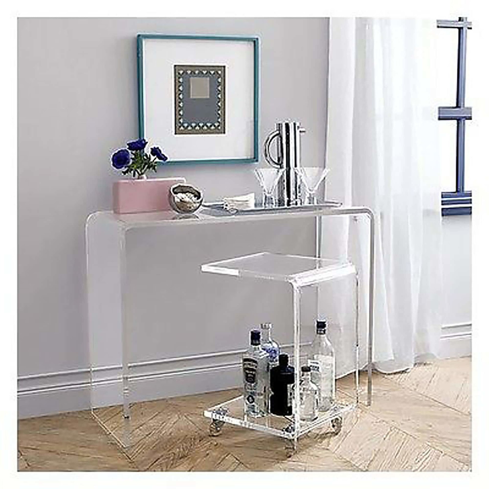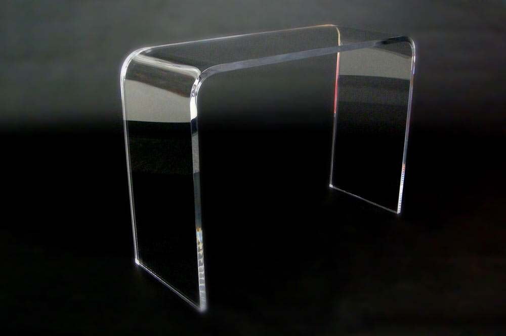 Our Waterfall Console Table is made with 1" thick acrylic and "waterfall" rounded corners, making it soft yet modern. This is a contemporary acrylic console table, perfect for any chic room in the house. In thick, furniture quality, transparent clear acrylic, this retro style console table suits any modern decor.