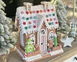Dive into a world of festive fantasy with this stunning large multicoloured gingerbread house, lit with LED. This gem is delicately crafted from resin and mirrors the delightful appearance of authentic gingerbread. Its surface appears to be dusted with sugar, while the myriad details, bursting with cheerful sweets and sugar icing, looks realistic enough to nibble on.