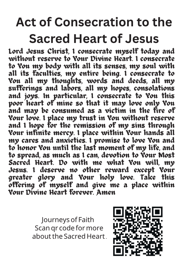 - Act of Consecration to the Sacred Heart Of Jesus Prayer Card, New