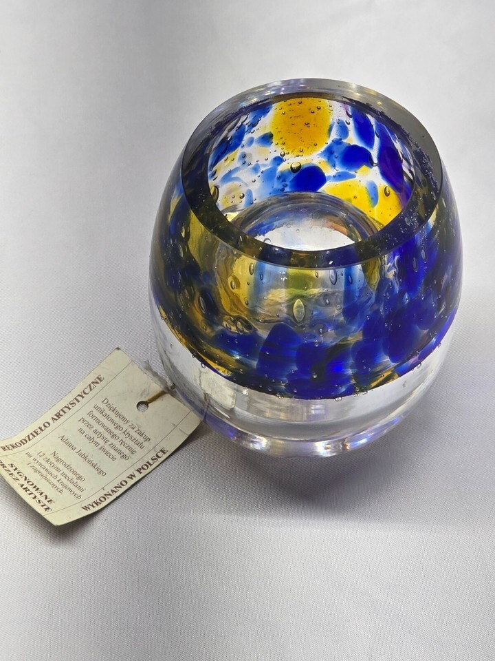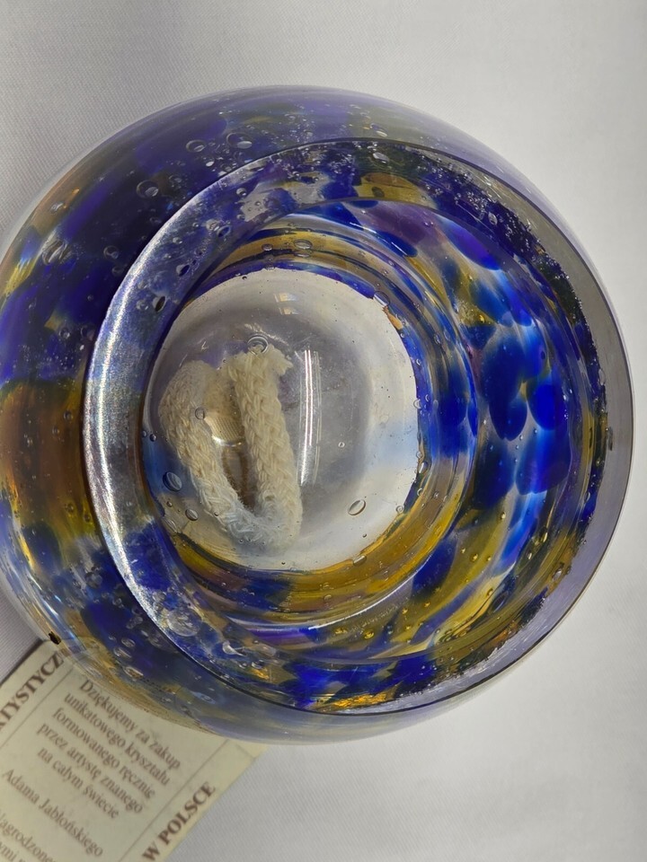 Poland made, Adam Jablonski signed egg shaped oil candle / paperweight. Item is in excellent never used condition with the original tag, sticker and wick.