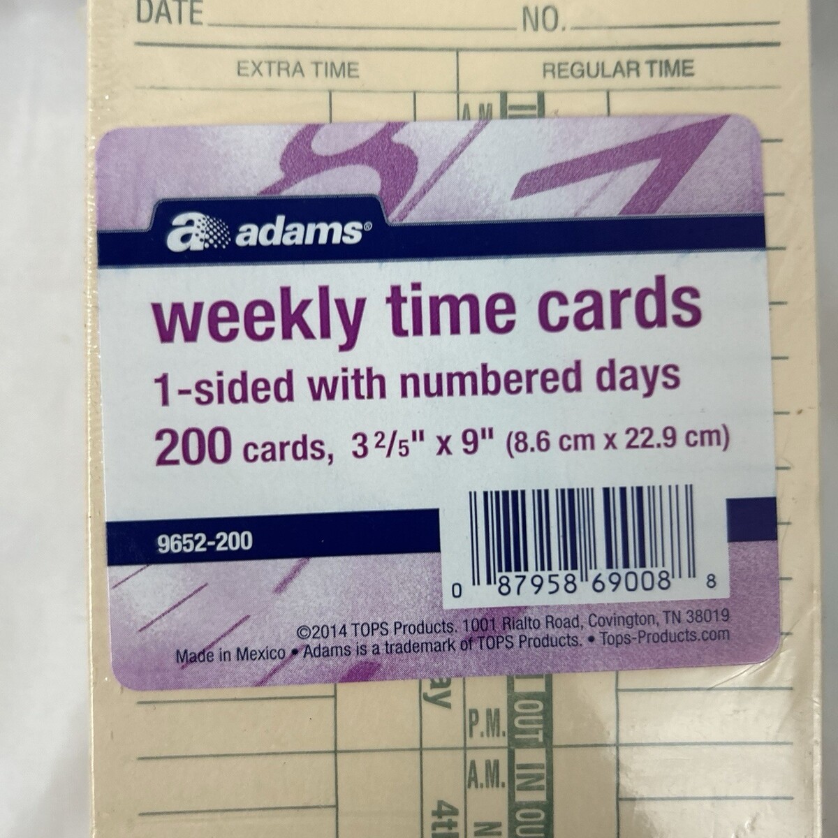 - Adams Weekly Time Cards 9652-200 1-Sided Numbered Days – Pack of 200, 3.25" x 9"