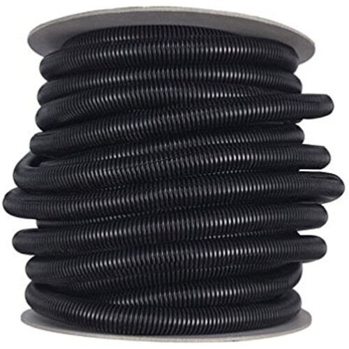 Compatible Diameter: 3/4 in. Length: 100 ft. Color: Black. Installation Method: Tubing. Compatible Length: 1200 in. Color: Black. Protects and organizes wires and cables. Corrugated plastic tubing with slit. Easily slips over bundles of wire. Cuts with scissors. Bulk reel, sold by the foot.