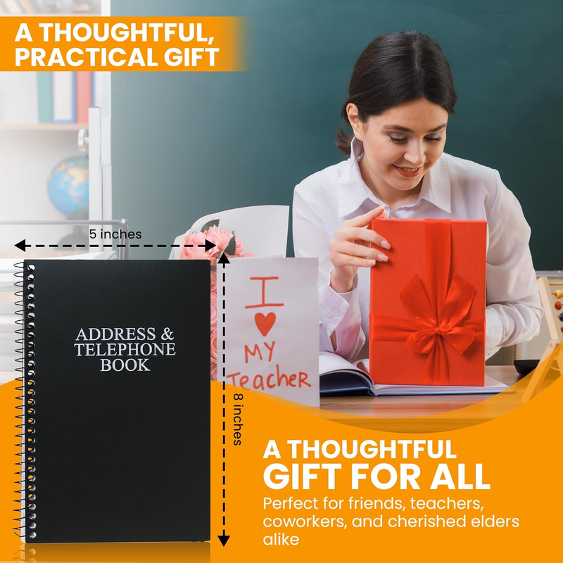 Address Telephone Book, 8X5-Inch, Black, Spiral-Bound, 384 Contacts, Organizer f