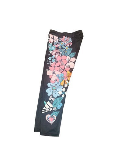 We are always willing to combine shipping when you purchase multiple items. Please feel free to reach out with any questions. Up for sale is a pair of adorable Adidas girls athletic leggings in size Large (14). These leggings are perfect for any active girl, whether she's playing sports or just running around outside. The leggings feature a beautiful colorful floral pattern down the side, and come in a fun multicolor design. They are made from high-quality materials and are sure to last for many wearings to come. These leggings are great for any occasion, whether you're going to school, hanging out with friends, or just relaxing at home. They are comfortable and stretchy, making them perfect for any activity. So if you're looking for a stylish and practical pair of leggings for your little girl, look no further than these Adidas leggings.