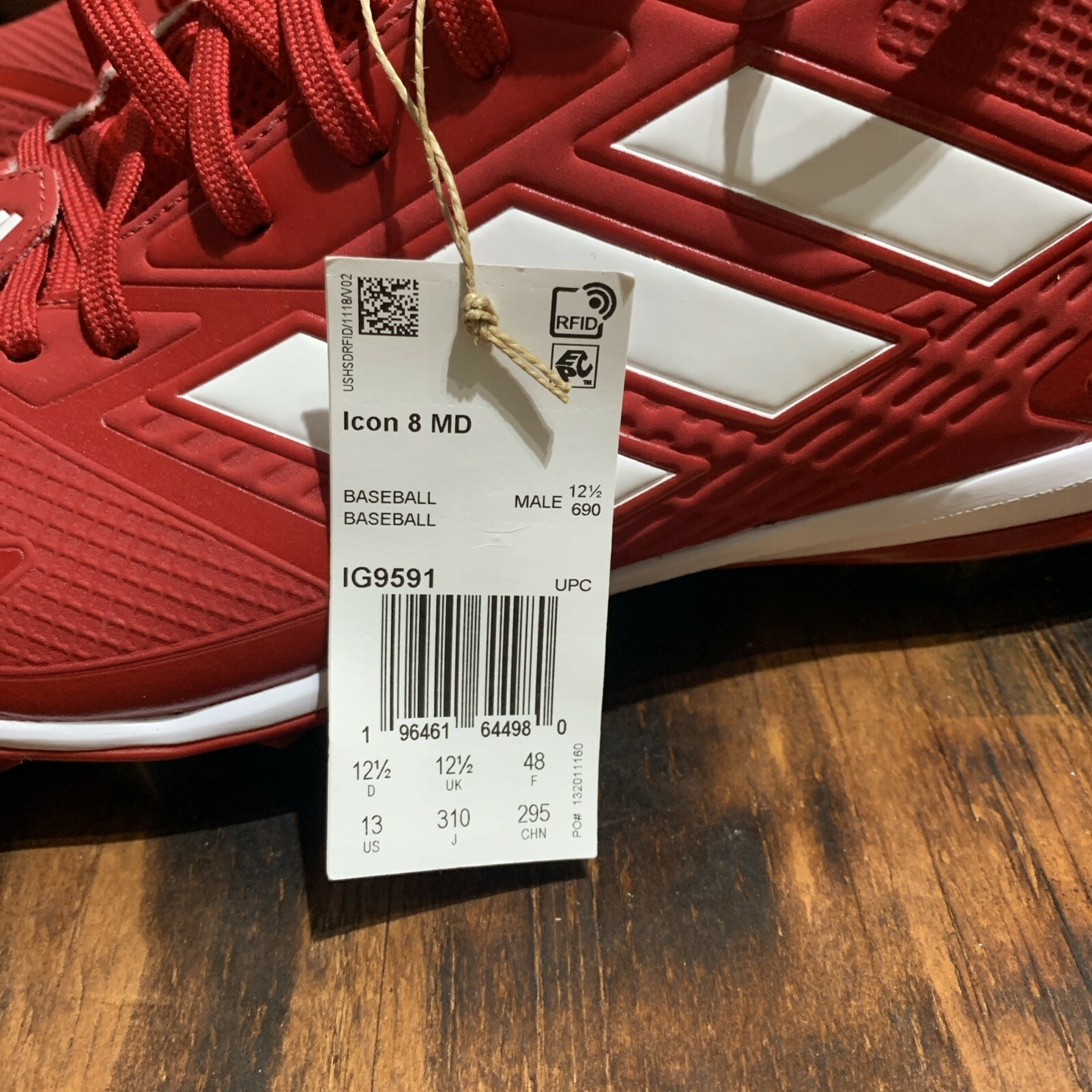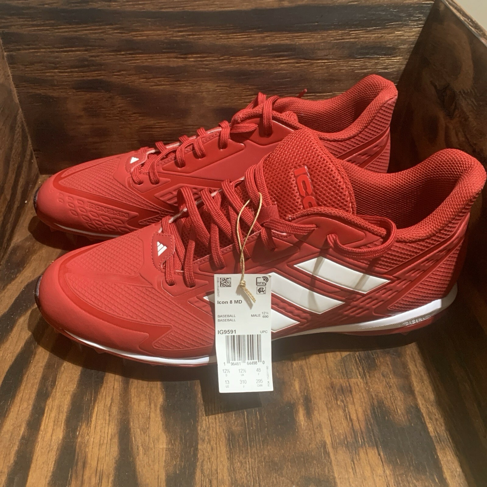 - Adidas Icon 8 MD Rubber Baseball Cleats Mens 13 Red IG9591 NWT No Box