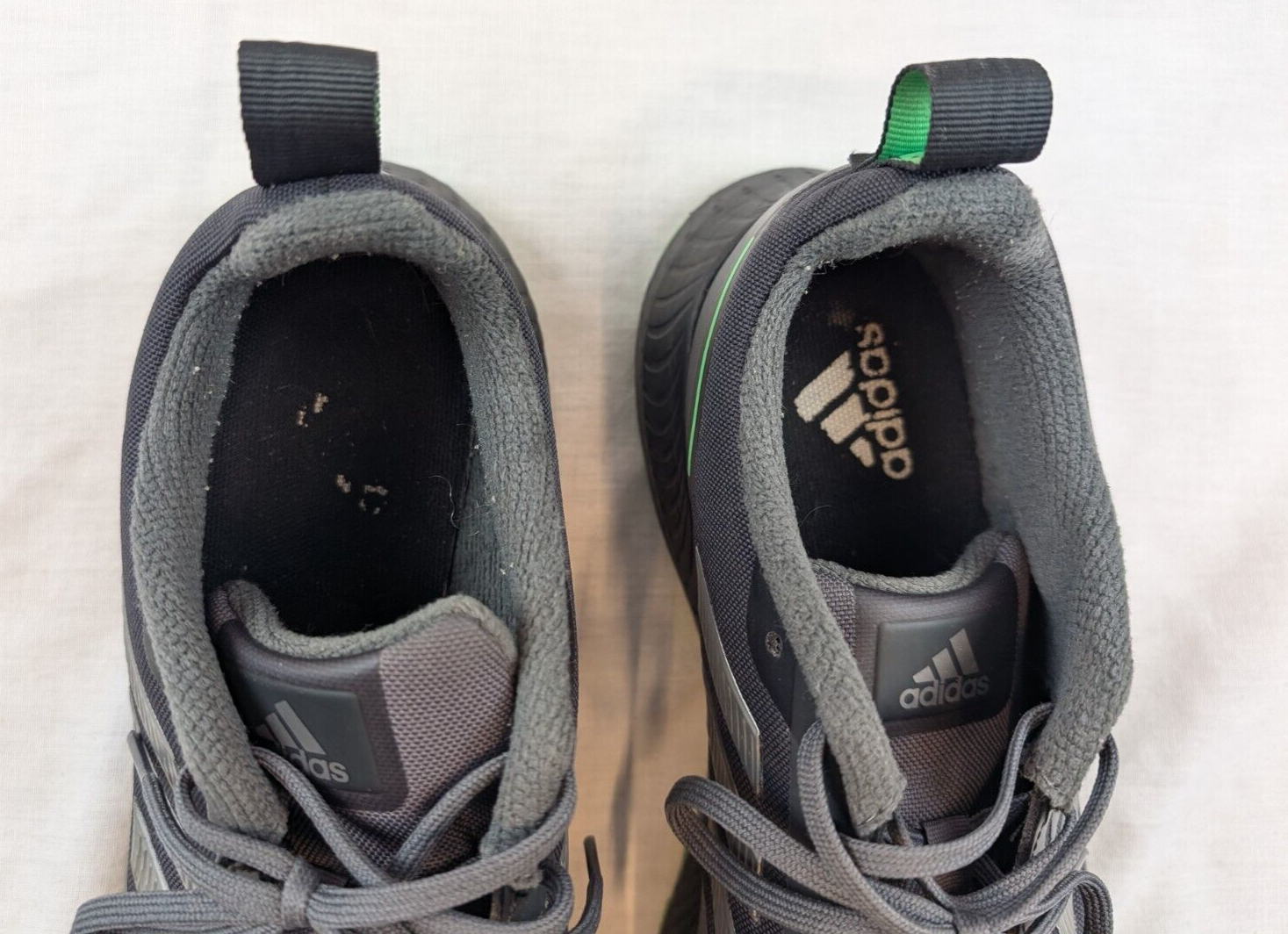 Up for sale is a pair of Adidas RUNFALCON 2.0 TR SHOES Carbon Iron Black Screaming Green Men Size 9.5