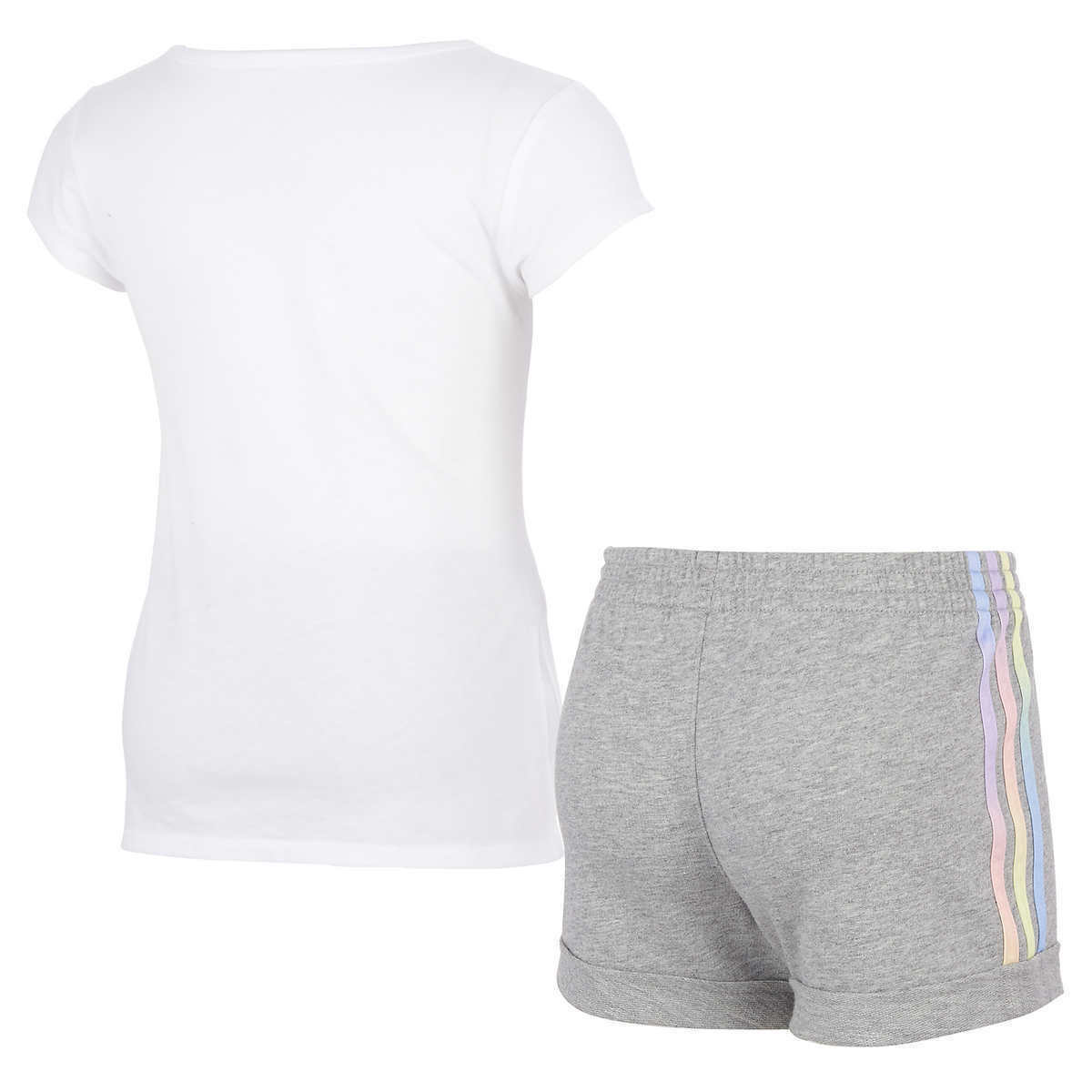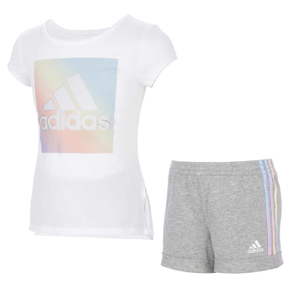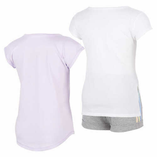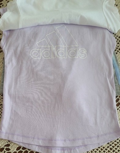 This Sale is for One (1) Adidas Girls' 3-Piece Mix and Match Set White ~ purple ~ gray in color Size 3T Set includes two (2) crew ~ short sleeve tees 1 pull-on shorts White ~ crew ~ short sleeve ~ jersey tee ~ sideways adidas gradient graphic ~ side slits Gray ~ crew ~ short sleeve tee ~ adidas graphic Pull-on ~ mint shorts ~ 3-stripe detail ~ Adidas logo graphic heat transfer on right leg Jersey tee ~ 60% cotton | 40% polyester Crew tee ~ 100% polyester Pull on short ~ 100% cotton Set is new with tags Please view photos for a good description of this item Thank you!