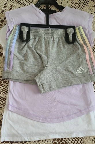 Primary image for Adidas Three (3) Pc Shorts & Shirt Set ~ Girl's Size 3T ~ Purple ~ Gray ~ White