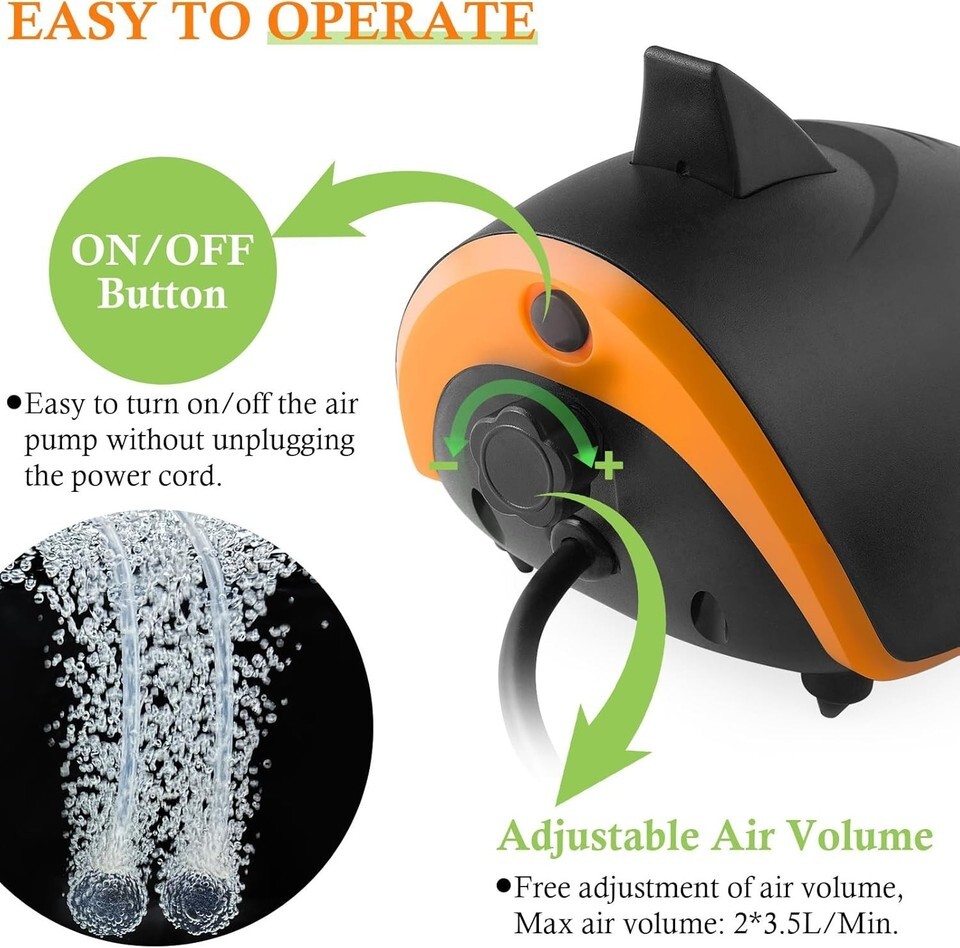 - Adjustable 110GPH Aquarium Air Pump with Accessories - Perfect for Large Tanks